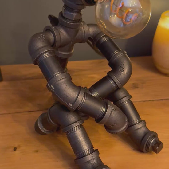 Take your home décor to the next level with the Tranquil Man Lamp. Made from sturdy iron pipe fittings and featuring a unique industrial design, this lamp is both functional and stylish. With a 2m fabric cable in choice of Grey or Black and Vintage style warm LED bulb, it's a true conversation starter.